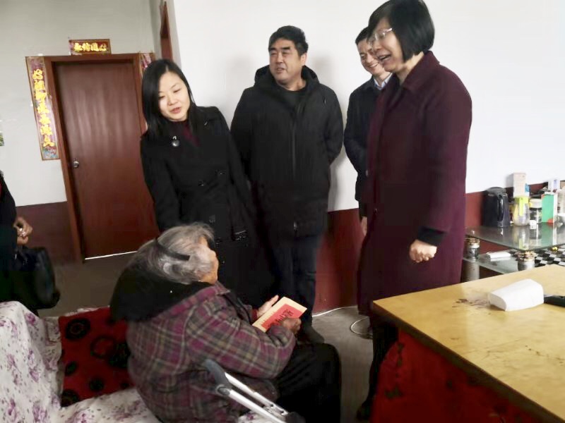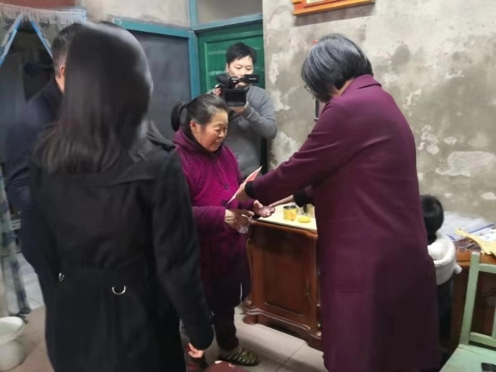 省妇联党组成员、副主席张媛媛给王云政老人送去慰问金和春节祝福