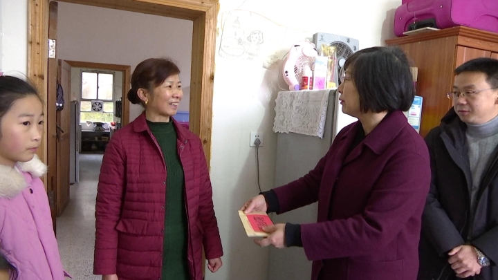 1月13日下午,省妇联副主席张媛媛一行来到临澧县安福镇安福路社区二完小四年级学生史明轩家中,与史明轩奶奶话家常,从交谈中了解家中情况和孩子学习情况,并送上了慰问金和新春祝福。