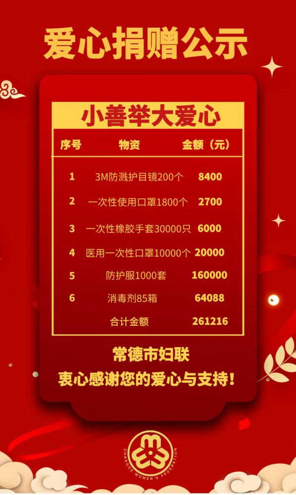 汇小流聚大爱——常德市广大女性及女性社会团体为疫情防控奉献爱心(附捐赠明细)