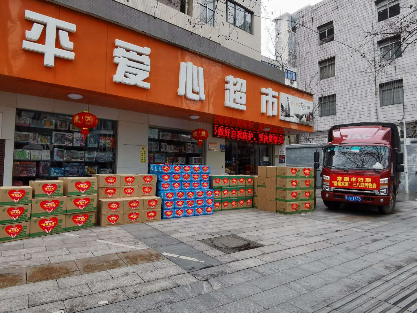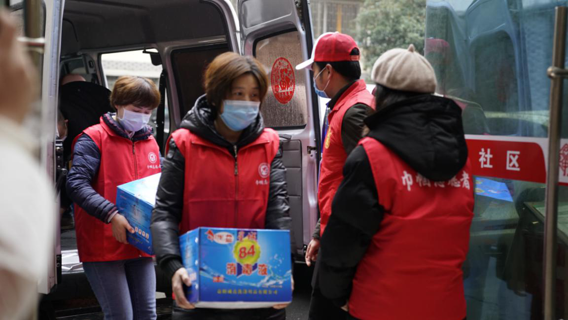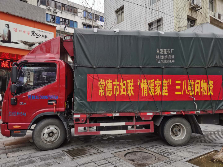 市妇联慰问全市一线妇女工作者及特困群体物资专车装满米面油、消毒液等物资