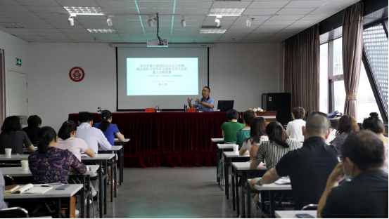 此次培训邀请了市委党校法学教研室陈小明副教授为大家授课,陈教授以《坚持完善中国特色社会主义制度推进国家治理体系治理能力现代化的重大战略部署》为题,深刻阐述了中国共产党十九届四中全会精神。他从历史和地理的角度旁征博引,坚持历史与现实相结合,理论与实践相统一,细致解读了党的十九届四中全会提出国家治理体系和治理能力现代化的重大意义和总体目标,新中国成立七十年以来我们党领导人民所创造的十三项历史成就和显著优势,并总结了中国特色社会主义制度所要巩固和完善的100项制度建设任务。
